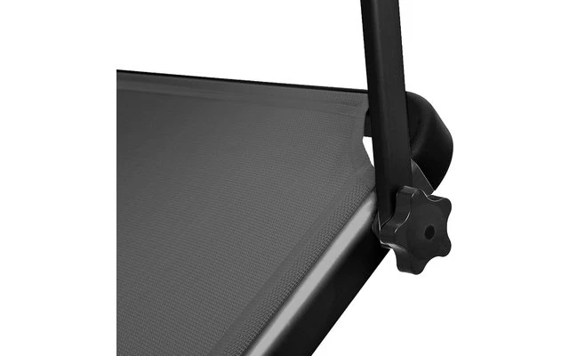 Cómoda tumbona de ocio para una estancia relajada en la playa, en el jardín o en la terraza. La robusta construcción está equipada con un marco de tres patas estable y plegable de aluminio anodizado y una superficie de descanso alta (H=48 cm) de tejido Syntex Plus resistente a la intemperie y de fácil cuidado. El amplio respaldo es ajustable en 4 direcciones para lograr una posición óptima de reposo/sentado. También se incluye un práctico toldo solar ajustable individualmente.