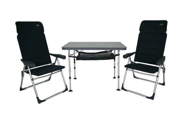 El juego Crespo consta de 2 sillas (AA/213-AEC Air-Elite Compact), una mesa (AA/246), una red de almacenamiento y una bolsa de transporte. El conjunto es ideal para 2 personas, muy compacto y fácil de transportar. Incluye bolsa de transporte Plegado, este juego tiene un diámetro de sólo 18 cm.