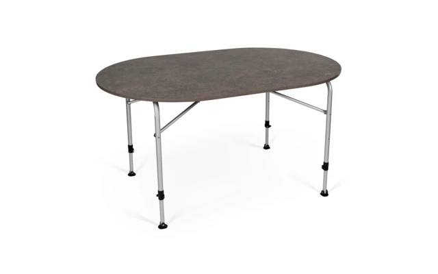 Al acampar con los muebles de Dometic, se puede cenar al aire libre. Las patas ajustables en altura y los pies que distribuyen el peso garantizan que nuestras mesas de la serie «Zero» puedan utilizarse en terrenos irregulares. Diseñada para campistas y turistas, esta mesa es extremadamente ligera y se pliega de forma compacta para facilitar su almacenamiento y transporte. La mesa Zero Concrete de Dometic tiene un tablero de aspecto de hormigón muy duradero que es completamente resistente al agua y al calor gracias a su construcción compuesta.