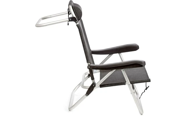 Silla de playa de aluminio Brunner con respaldo ajustable en 4 direcciones y cojín cervical para mayor comodidad. Perfecto para relajarse y disfrutar del sol junto a la piscina o en la playa.