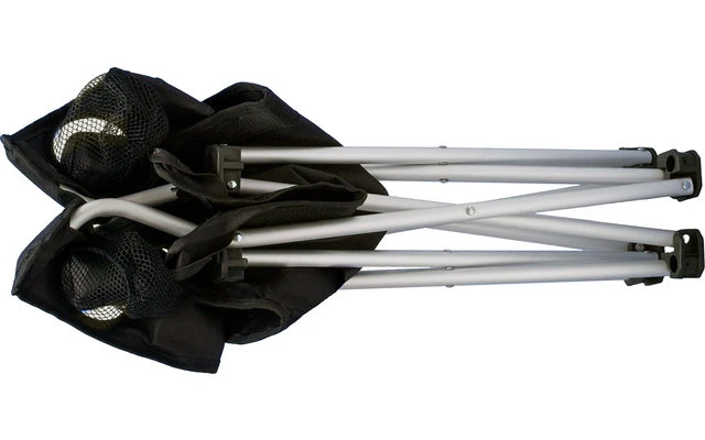 La más sencilla. Esta silla se puede abrir rápida y fácilmente y ofrece el equipamiento básico perfecto para sentarse en el exterior. Muy ligero gracias a su construcción en aluminio. Se incluye una resistente bolsa de embalaje.