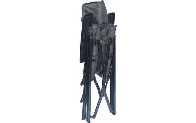 Los reposabrazos y el armazón de color negro confieren a la silla de camping compacta un aspecto elegante y atemporal. El Modi se pliega sobre sí mismo por ambos lados y, por tanto, ocupa muy poco espacio cuando está plegado.
