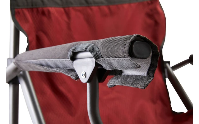 Estable, robusto y de aplicación universal: eso es «Roxy». Gracias a su excelente elaboración y al uso de materiales de alta calidad, «Roxy» tiene una excelente estabilidad y una capacidad de carga muy elevada, de hasta 120 kg. Los pies anchos proporcionan una protección óptima contra el hundimiento excesivo, incluso en superficies especialmente blandas como el barro o la arena. Gracias a la altura ideal de su asiento, «Roxy» es perfecta para sentarse en mesas de camping u otras mesas, por lo que esta silla plegable no debería faltar en ninguna caravana. La práctica silla plegable también impresiona por sus ingeniosas características. Además del obligatorio soporte para bebidas, «Roxy» tiene un abridor de botellas inteligentemente integrado en el marco. Así pues, «Roxy» se impone en todas partes, ya sea en el camping o en un festival, en la playa o en el jardín. La silla plegable se presenta en una robusta bolsa con correa de transporte.
