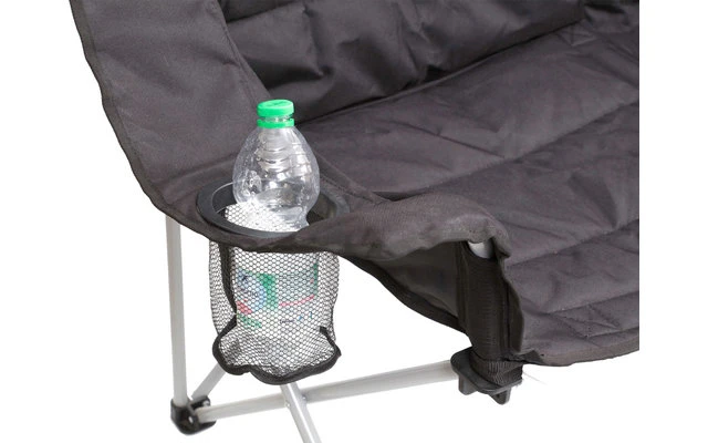 Sofá para 2 personas de nuevo desarrollo, muy cómodo, con armazón plegable ligeramente inclinado. Con zona organizadora central con 2 bolsillos para gasas. Asiento y respaldo cómodamente acolchados. Montaje y desmontaje en segundos sin ensamblaje especial. Incluye bolsa de embalaje.